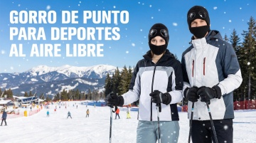 以图中的针织护耳帽子为元素,运动户外,男女通用,设计6张跟针织护耳帽子有关的图,比例 「16:9」,语言是西班牙语