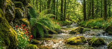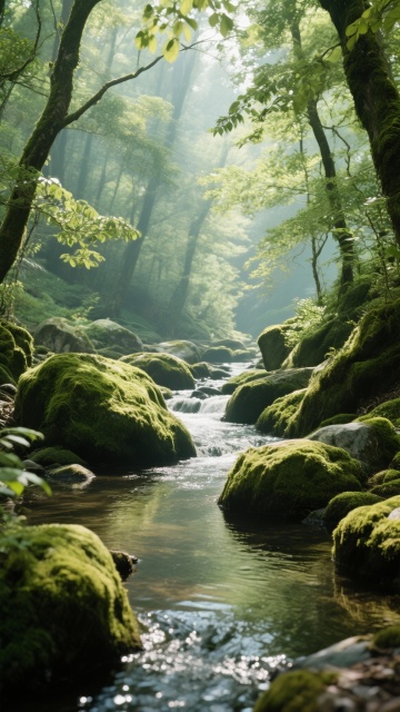 晨雾弥漫的森林小径,光影斑驳,水彩风与印象画派交融,清新梦幻,静谧唯美的自然诗篇。