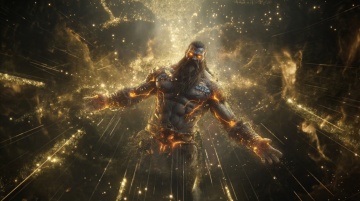 3D风金属装甲战士,神秘液态能量环绕,酷炫未来感十足,虚拟现实宇宙背景。