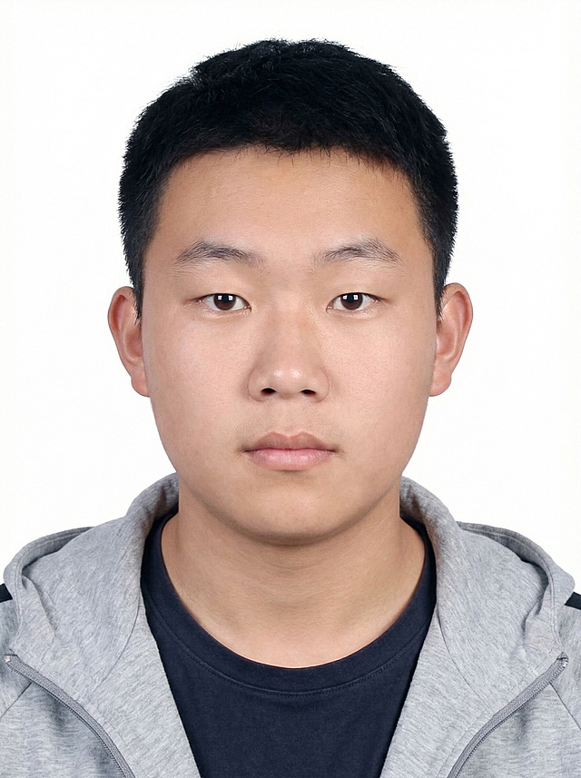 保留第一张图中人物发型、脸型、年龄特征生成标准样式纯正面证件照;人物主体严格居中,头部大小与位置严格对齐第二张图,双肩水平平衡,面部中轴线对齐画面中心,正视前方;标准证件照构图,人物绝对居中;头顶上方距离上边缘高度10%,下巴距离画面下边缘高度30%,人物主体占比约68%;肩部平展与画面水平轴平行;头部占比严格对齐第二张图;提亮肤色,消除暗沉,清透裸妆,隐形毛孔,均匀肤色,唇色自然提亮;肤色白皙细腻,肤质呈现匀净哑光质感(自然白皙);轻透裸妆+重点提亮;唇色润泽(半哑光质地);眼神澄澈,看向镜头,气质自信,嘴角微微上扬表情自然;耳廓可见度一致;肩部平展,肩线与画面水平轴平行;头肩比例协调呈现;免冠,不戴帽子,无头饰,无发带;佩戴眼镜,眼镜无反光;身着深色夹克外套,内搭浅色翻领拉链衬衫,不戴帽子,无头饰,不戴帽子,无头饰,无发带;柔和正面顺光均匀柔光,面部明亮无硬影,背景均匀提亮,画质清晰,零噪点降噪;面部清晰;背景亮度均匀统一;高清锐利画质,细节清晰可见;零噪点处理;色彩还原自然,均匀柔和布光,无明显阴影,面部光影干净,柔光正面打光,自然光影过渡,皮肤质感细腻,哑光质感;标准焦段50mm,纯正面,入境范围头部至胸部以上区域,F/4光圈(兼容F/2.8-F/4区间),平视视角(镜头与人物视线完全齐平),正视视图;人物绝对居中(居中构图),位于画面中心;严格限定标准证件照规格;视线水平(瞳孔连线与画面水平线平行);双耳对称露出,双肩水平且平衡,头部占比严格对齐垫图,禁止大头照(画面铺满画布,无边框留白);专业证件照质感,高清人像质感,细腻皮肤纹理,严格按照第一张图内容生成,分辨率4K;极简纯色标准蓝色背景,背景亮度均匀且统一(哑光质感);禁止裁切头顶, 禁止额头被截, 禁止超大头, 禁止主体溢出画面, 禁止偏头/倾斜;头顶上边距8-10%, 头部高度60-68%, 双眼高度56-58%, 严格对齐第二张垫图; 画面比例7:9详情