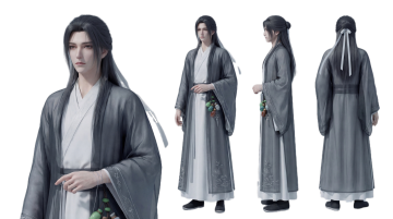 3D角色风融合水墨与古典中式美学,静谧优雅的虚拟现实人物设计,展现文艺感与面料质感的完美结合。
