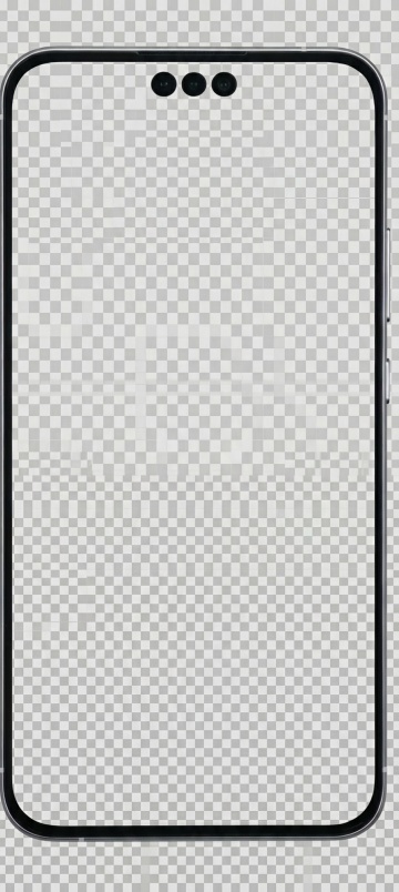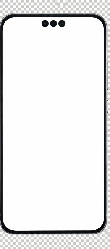 一个现代智能手机的3D渲染图,采用极简风格设计,主体为黑色边框与银色底部边框的组合,正面是纯白色无任何内容的屏幕,屏幕顶部有一个黑色的刘海设计。手机以略微倾斜的角度展示,呈现出一定的立体感和空间感。整体画面干净利落,背景为纯白色,没有任何多余元素干扰主体。线条流畅,边缘锐利,体现出科技产品的精致感和现代感。光影处理简洁,主要通过边框的明暗对比来增强立体感,没有复杂的阴影效果。