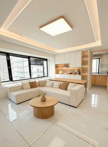 现代简约风格卫生间,整体采用白色大理石纹理瓷砖墙面与灰色地砖,搭配黑色金属边框的扇形玻璃淋浴房,内部设有银色淋浴喷头和挂杆,挂杆上搭着灰色毛巾。靠窗位置安装白色智能马桶,窗边有百叶窗,自然光透过窗户柔和照亮空间,天花板装有嵌入式照明和通风系统。左侧为黑白配色的浴室柜,台面为大理石材质,台上放置洗漱用品,整体空间干净整洁、光线明亮,具有清晰的线条感和现代设计感,呈现出不同场景下的卫生间摆设布局。
