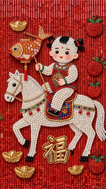马年春节创意海报|珠绣艺术风格
