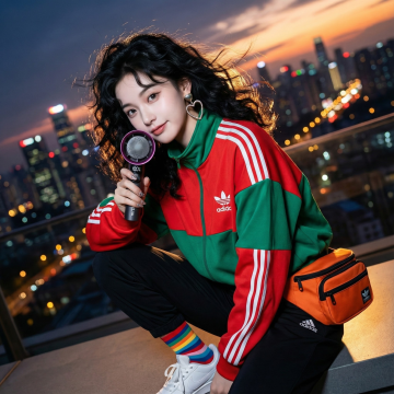 三位充满活力的年轻人在开阔的城市平台上向前奔跑,姿态轻盈舒展,充满动感与喜悦。画面采用明亮清新的摄影风格,主色调为湛蓝的天空、洁白的云朵与人物运动服的紫色、灰色、米色等活力色彩,光影明亮柔和,阳光从上方照射形成清晰自然的阴影,凸显出人物的立体轮廓和运动的动态感。背景可见远处模糊的城市天际线,地面是灰色带有白色线条的铺装,整体构图开阔舒展,充满积极向上的氛围。人物穿着现代运动服饰,包括运动夹克、短裤、运动鞋和帽子,展现出健康活力的运动风尚,画面传递出青春、运动、自由与快乐的情感。