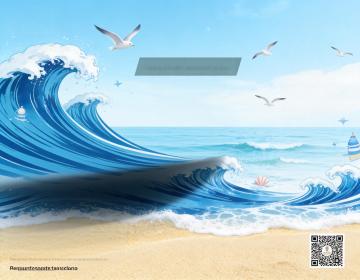 手绘风格的海浪特写,画面左侧是翻涌的白色浪花,右侧是深邃的蓝色海水,浪花与海水的交界处清晰自然,整体色调以蓝白为主,笔触富有手绘质感,线条流畅且带有自然的纹理变化,营造出一种动态的海洋氛围,构图采用竖版,海浪从左上角向右下角延伸,展现出海浪的自然流动感。
