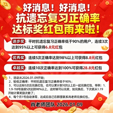 好消息!好消息!抗遗忘复习正确率达标奖红包雨来啦!