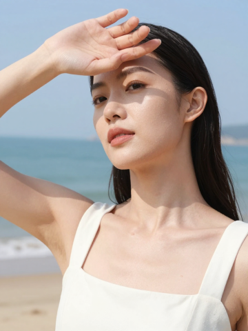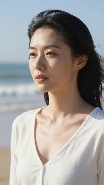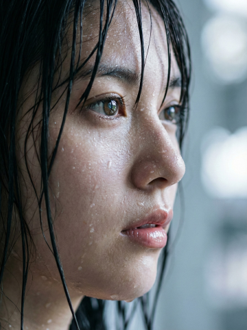 写实风肖像,水珠感肌理与皮肤质感交织,光影柔和,清透自然,营造唯美文艺氛围。