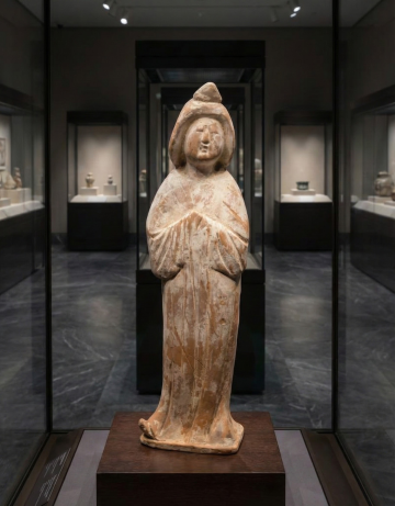 以时空穿越为灵感来源,以唐代陶俑为载体,AI重构了古典女性的优雅神韵。质朴的陶土质感与岁月痕迹,被转化为柔软毛绒材质与细腻色彩,赋予传统形象以温暖的生命力,使唐代陶俑穿越到现代展示独特的魅力。