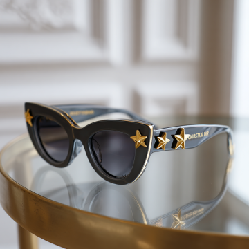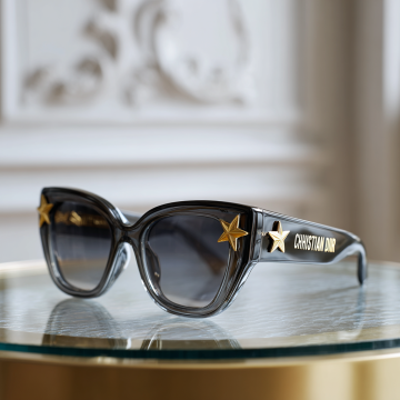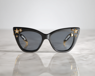 3D渲染的太阳镜,变换样式,夸张的几何造型镜框,创新的镜片切割设计,柔和的奶油白镜框搭配深邃黑镜片,光滑细腻的哑光材质,高反光镜片表面,简约现代风格,清晰的光影对比,柔和的阴影效果,白色背景,产品展示角度,突出设计感与时尚感