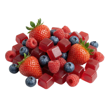 去除包装袋,提取上面的水果和软糖,生成几粒和包装上一样的红色软糖和水果