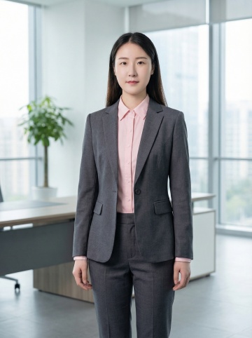 成熟大气抱胸雾蓝色西装女士形象照