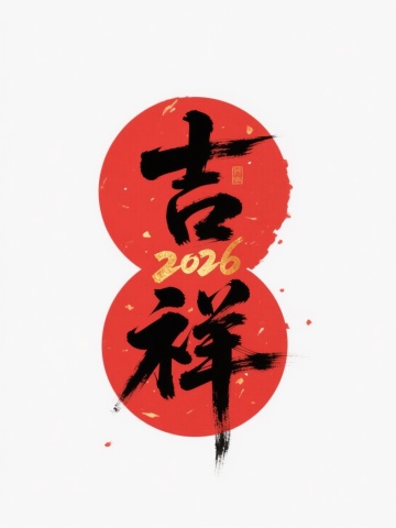 主体是红色春联,两个红色圆形上下拼接,内部写着苍劲的黑色毛笔书法 “顺遂” 二字,点缀金色渐变的 “2026” 。白色背景
