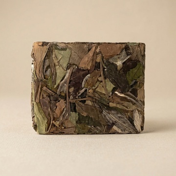 将白底替换为简约舒适的浅米色哑光背景,光线柔和均匀,很好地突出了茶叶产品主体。
