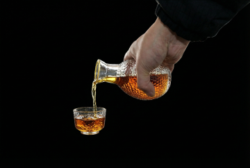 3D玻璃质感水滴造型,重拟物设计展现清透与体积感,科技感十足的琥珀色液体,光影细腻,现代简约风格。