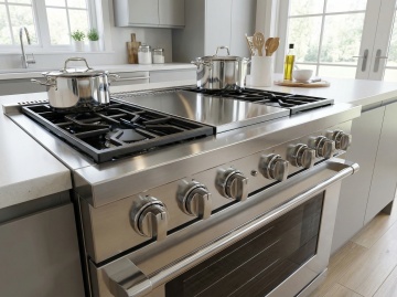 现代简约风格厨房场景,不锈钢材质的银色水龙头安装在白色石英石台面上的嵌入式水槽边缘,水龙头线条流畅、设计简洁,带有弯曲的出水嘴和旋钮式开关,表面光滑且有金属反光质感。台面干净整洁,左侧窗台上摆放着一盆盛开的白色百合花,右侧窗台上放置着几个新鲜的青柠和柠檬,窗外透进明亮的自然光,光线柔和地洒在台面和水龙头上,形成淡淡的阴影和高光,整体氛围清新、明亮、整洁、温馨,具有现代家居的舒适感和简约美学。
