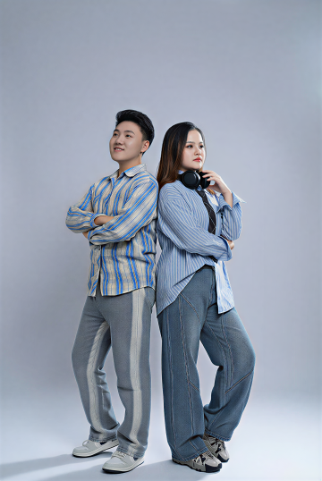 生成了一张白色背景下,穿着精美纳西族特色服饰的中年夫妻全身写真照,画面为8K高清质感,夫妻姿态自然和谐。