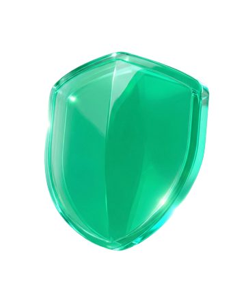 科技感十足的3D玻璃风盾牌图标,融合未来感与清透质感,光影流动展现体积感,轻拟物设计传递安全守护理念。