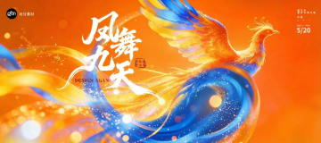 国潮风插画,凤凰展翅于液态光流之中,粒子闪烁,梦幻唯美的超现实视觉,融合中式美学与虚拟自然,呈现“凤舞九天”的磅礴意境。