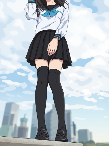 甜美清新的动漫风插画,少女身着水手服,回眸一笑,尽显青春活力。