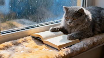 温暖春日,小犬静卧窗台,阳光洒落,光影柔和。插画风厚涂技法,重拟物细节,油画质感,营造温馨舒适氛围。