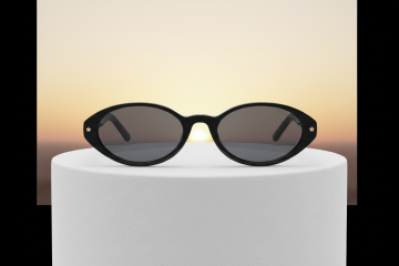 3D渲染的太阳镜,变换样式,夸张的几何造型镜框,创新的镜片切割设计,柔和的奶油白镜框搭配深邃黑镜片,光滑细腻的哑光材质,高反光镜片表面,简约现代风格,清晰的光影对比,柔和的阴影效果,白色背景,产品展示角度,突出设计感与时尚感