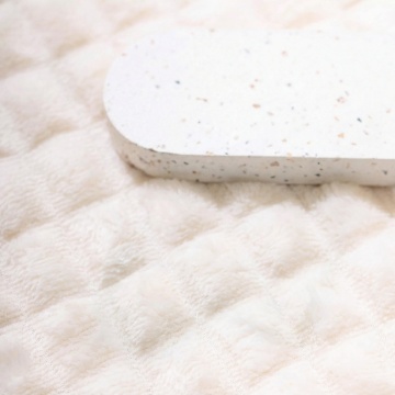 一张高质感的地毯特写,整体呈现纯净的白色调,光线柔和均匀地洒落在表面,营造出明亮、洁净的氛围。地毯表面材质改为光滑细腻、纹理清晰的羊毛,保留原有的大面积覆盖构图和自然的褶皱起伏感,羊毛纤维紧密且带有细微的自然光泽,展现出柔软而富有弹性的质感,整体视觉效果保持与原图一致的简约、高级感。