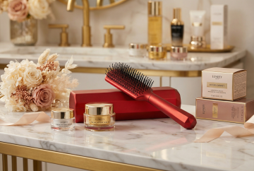3D重拟物风格,柔和粉调营造甜美舒适感,金属质感唇膏与塑料风礼盒交织,节日氛围浪漫精致。