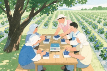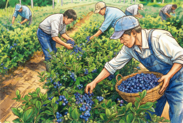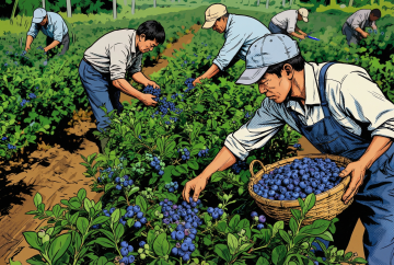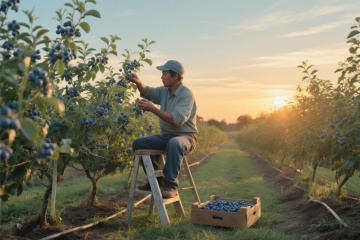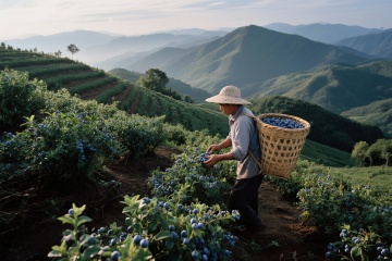 未来感3D果园,科技机械臂与无人机协同作业,虚拟自然与简约主义完美融合。