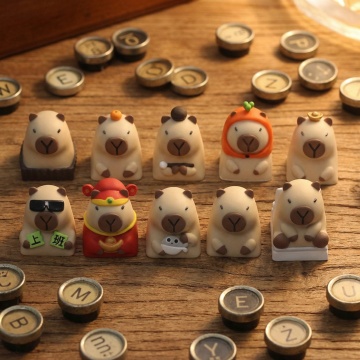 根据参考图生的6个图案,生成对应的6个异形硅胶杯垫,都放在室内明亮的桌子上,随机堆叠