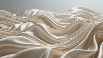 高品质丝绸面料特写,具有高度光泽感和细腻的纹理,呈现出自然流畅的波浪形褶皱,柔和的光影效果突显丝绸的柔软垂坠质感,整体画面简洁纯净,充满优雅奢华的氛围。
