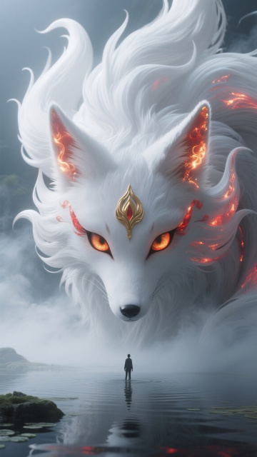 画面采用强透视中央构图,充满张力,小兔子在画面中央背对镜头面向女神,体型渺小且仰视神女,女神正面面向镜头,背景宏大并睥睨天下,神女发丝轻盈飘落并带有宿命感,手指为机械,手臂为皮肤,机械与皮肤过渡自然,嫦娥手指轻触小白兔,手指与小兔接触处有金沙线条并散发出金色光晕,小兔呈现机械化转变,周边有金色光点,整体融合超现实主义、飘渺感、独特造型、大师设计的夸张元素与中式风格,并带有孤独感和末世氛围,色调为暗
