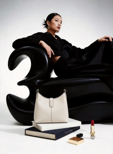 简约主义风格,融合优雅与商务感,柔和色调与质感面料营造舒适时尚氛围,实景空间衬托高级时尚格调。
