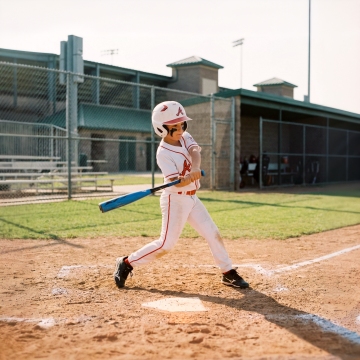 写实摄影风格,阳光明媚的足球场上,一名身着红色球衣的足球运动员正全力踢向足球的动感瞬间,运动员姿态舒展,腿部肌肉线条紧绷,足球表面纹理清晰,绿色草坪在夕阳暖金色光线照射下显得生机勃勃,背景有模糊的其他球员和观众席轮廓,天空中飘着少量白云,整体画面光影对比强烈,高光处有自然的光晕效果,氛围充满活力与运动激情,动态感十足,细节丰富,色彩真实和谐,具有电影般的画面质感和身临其境的临场感。