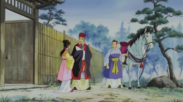 古典中式工笔风,水墨淡雅,师徒共学,山水环绕,意境深远。