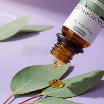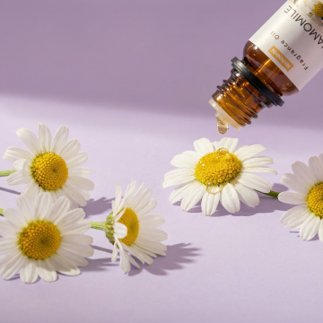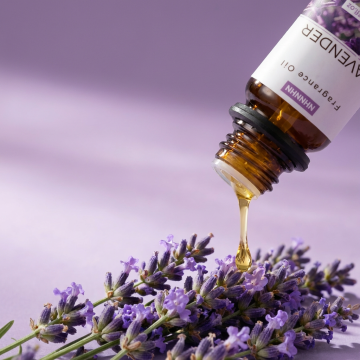 一张高品质的精油产品摄影海报,采用写实风格,主色调为清新的薰衣草紫与柔和的淡金色。画面中,一瓶带有精致滴管的透明精油瓶(瓶身可略带磨砂质感或光滑玻璃质感)置于铺满白色鹅卵石的浅滩上,瓶身周围点缀着紫色薰衣草花穗和几片嫩绿的薄荷叶。背景是朦胧的黄昏森林,暖金色的阳光透过枝叶缝隙形成柔和的光束,水面上漂浮着几片花瓣,泛起细微的涟漪,水面倒映着瓶身和周围的植物,营造出宁静、舒缓、自然疗愈的氛围。光线从斜上方照射,在瓶身和鹅卵石上形成清晰的高光和柔和的阴影,瓶身表面可带有几滴晶莹的水珠,增强水润感和新鲜感。整体构图采用中心聚焦,突出精油瓶主体,背景虚化处理,形成明显的景深效果,让观者视线集中在产品上,快速传达出产品的天然、纯净与舒缓特性,符合追求自然护肤、放松身心的目标受众审美。