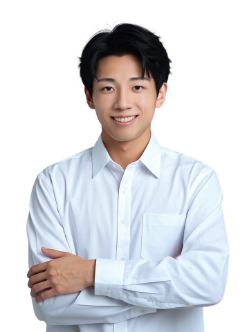一位年轻亚洲男性,身着剪裁合体的黑色西装,内搭白色衬衫,系着黑色领带,左手自然插在西装裤口袋,右手轻握西装前襟,面带温和微笑,姿态自信挺拔,背景为纯白色,整体呈现清晰、专业、正式的商业人像摄影风格,光线均匀柔和,突出西装的挺括质感与人物的精神面貌。