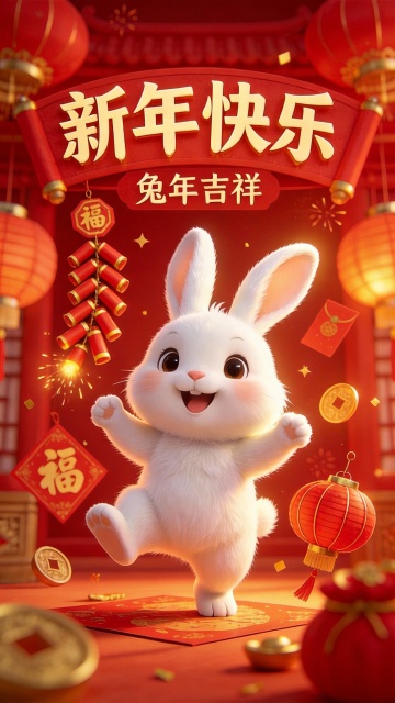 软3D风格插画,融合国潮元素与卡通感,雪夜烟花绽放,红灯笼高挂,孩童嬉戏屋檐,温馨喜庆的春节氛围扑面而来。