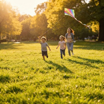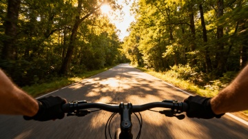 产品为骑行手套,图中左边为手背花纹,右边为手心。生成一张全家人骑行全身场景图