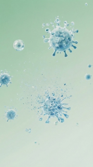 透明玻璃质感的细胞悬浮在柔和的蓝白色光晕背景中,中央细胞内部包含精致的分子结构模型,周围环绕着多个大小不一的透明气泡,一支玻璃滴管正将一滴液体滴向中央细胞,整体呈现出高度写实的3D渲染效果,光影层次丰富,高光与阴影过渡自然,营造出纯净、科技感与精密科学的氛围,画面具有清晰的视觉焦点和梦幻般的透明质感。
