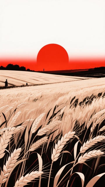 写实日漫,红黑色,树林,红色的太阳,近景构图大气、燃,细节丰富,9:16,不要人物,生成2张