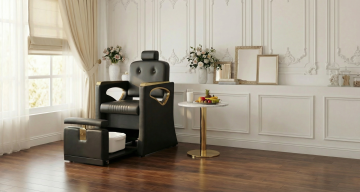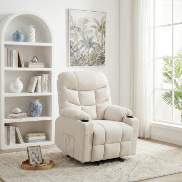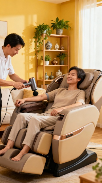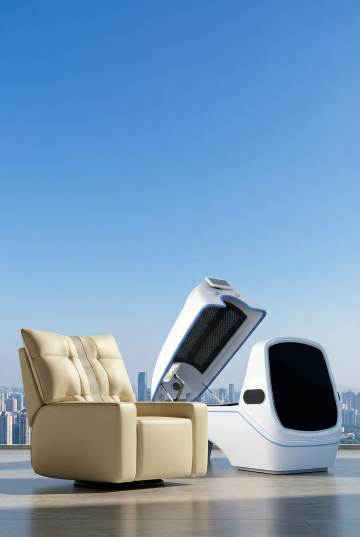 帮我生成一张浅色45度角拍摄的按摩椅png图