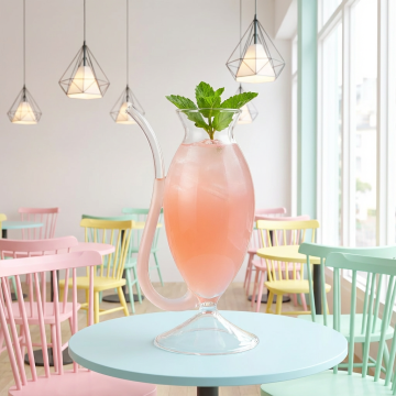 现代工业风餐饮空间室内设计,深灰色金属裸露天花板搭配黑色金属框架吊灯,暖黄色灯光营造温馨氛围,地面采用蓝灰色与浅木色交错拼接的人字形几何图案地板,浅色砖墙与深色木质餐桌椅组合,多种颜色餐椅(灰色、蓝色、米色)围绕圆形木质桌面,开放式吧台区域可见食品陈列,整体空间布局通透,视觉层次分明,兼具工业粗犷感与舒适用餐氛围,适合快餐或休闲简餐厅的餐饮背景场景。