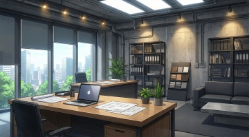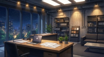 插画风的虚拟自然景观,清新舒适,小屋与绿树相映,营造出宁静的田园氛围。