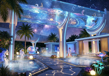 现代感室内滑雪场,3D混合材质风呈现光影与运动交织的酷炫场景,重拟物设计增强实景感,科技感穹顶映衬清爽雪趣。