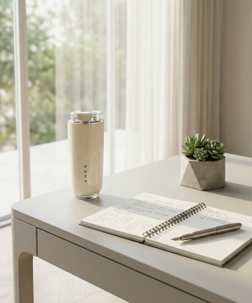 清新自然的户外场景中,四款简约金属质感保温杯以性冷淡风与轻拟物设计呈现,柔和色调搭配实景光影,传递舒适与高级感。