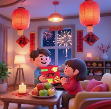 软3D风格插画,融合国潮元素与卡通感,雪夜烟花绽放,红灯笼高挂,孩童嬉戏屋檐,温馨喜庆的春节氛围扑面而来。