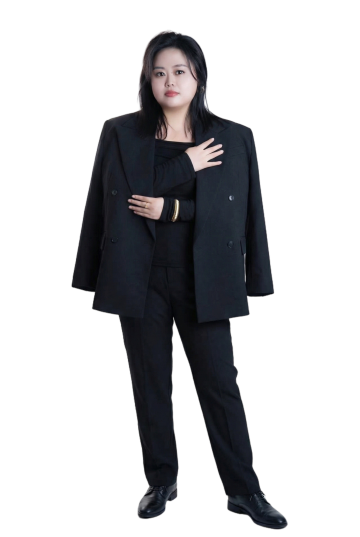 我想换成蓝色的西装,最好是现代化职业女性的感觉,参考韩式肖像照