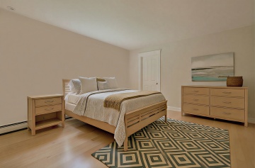 极简主义室内场景,米白色墙壁搭配浅色木地板,左侧窗台上摆放一盆绿色植物,阳光透过窗户在墙面和地面投射出清晰的窗格阴影,光线柔和明亮,整体氛围宁静舒适,空间宽敞通透,不同风格的室内背景元素(如北欧风家具、日式隔断、工业风灯具、复古装饰画等)自然融入场景,保持与原图一致的光影质感和色彩基调。