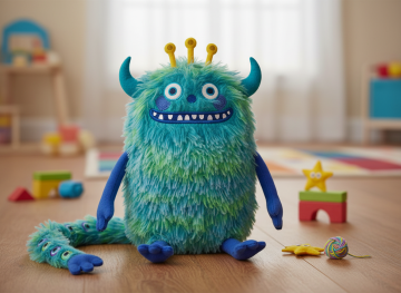 软3D风萌趣万圣节角色,毛发生长质感南瓜灯与小巫师,搭配光影梦幻蓝调背景,可爱卡通感十足。